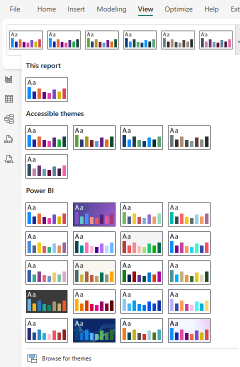 - Go to the View tab → click the Themes dropdown → select Browse for themes.